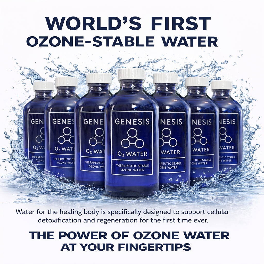 Hydration is no longer just about thirst. Genesis O₃™ Water is ozone-stable therapeutic water designed to support cellular detoxification, oxygen utilization, and regeneration at the most foundational level.